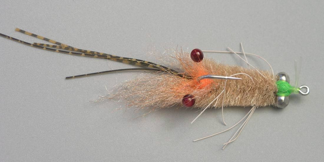 Enrico's Mantis Shrimp features a great-looking set of crustacean eyes, and a monofilament weedguard. This is another "buggy" pattern that can double very well as an imitation of a small crab, and